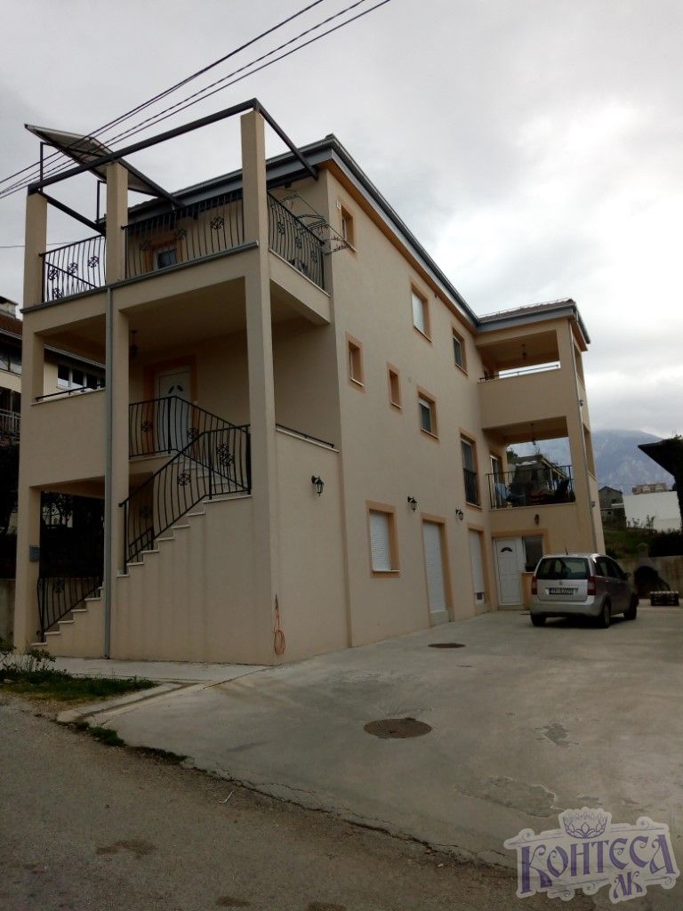The house was built in 2016 and is located in Dumidran. It is located 500m from the Adriatic Highway, 1km from Tivat Airport and 2km from the city center and marina Porto Montenegro. The total gross area of the building is 302m2 with living space of 197m2 and consists of 3 floors. Ground floor, which consists of 2 separate one-bedroom apartments of 30m2 and a summer kitchen of 8m2. The first floor is an apartment, 72m2 and consists of a hallway with internal stairs, small bathroom, kitchen with pantry, dining room, living room with balcony. The second floor, 65m2, consists of 3 bedrooms, a large bathroom and two balconies. The house was built to all standards and very well insulated. For space heating and cooling there is a Multi Split system with Inverter air conditioners (2 + 7). Water is heated via solar panels, with a 200l boiler. Using these two systems,