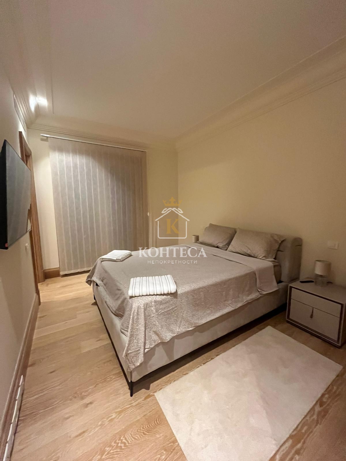 The apartment with a total area of 107m2 (94m2 of living space + 13 m2 of terrace) consists of a spacious living room with dining area and kitchen, two bedrooms, two bathrooms and a terrace.