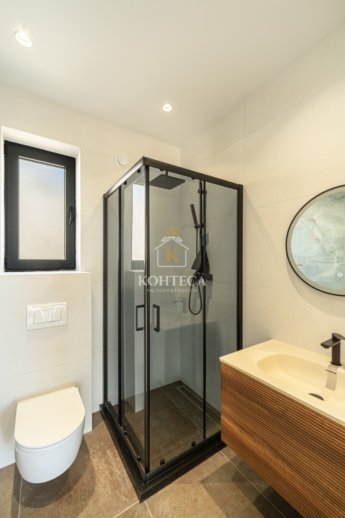 – All engineering systems: electricity, sewage, water, water heaters in bathrooms, air conditioners in the living room and bedroom, underfloor heating in bathrooms and kitchen,