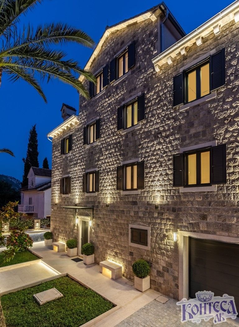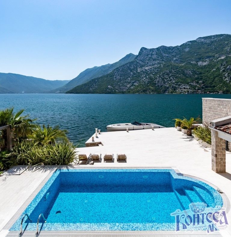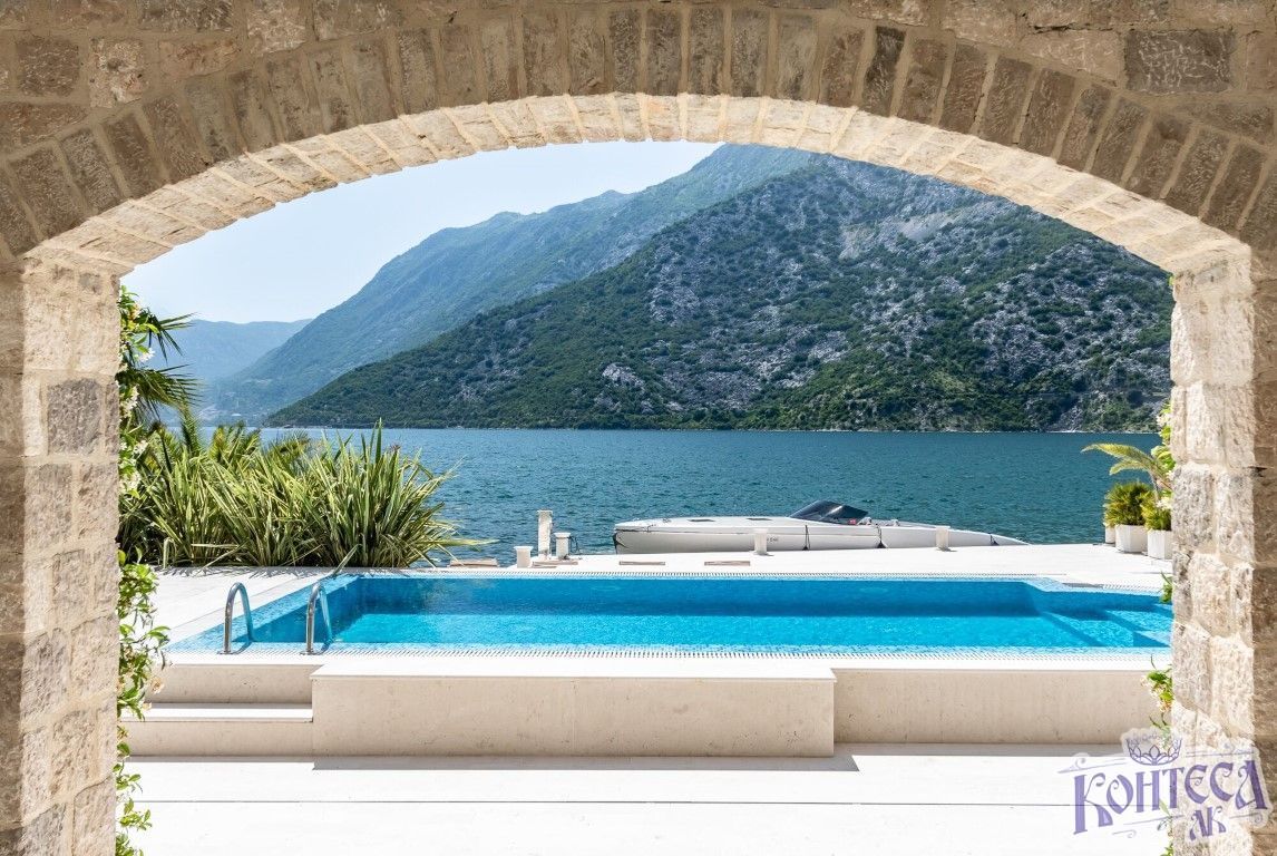Luksuzna i jedinstvena vila, u prvom redu do mora površine 554m2 u Risnu, nalazi se na parceli površine 605m2 koja je u potpunosti privatna i zaštićena. Položaj parcele je ekskluzivan, dvorište sa pontom direktno kontaktira sa morem. Vila raspolaže sa 7 spavaćih soba, 7 kupatila, ima garažu za jedno vozilo, a od dodatnih sadržaja ima kamin u trpezariji, podno grijanje na cijelom prizemlju i u svim kupatilima, centralni klima uređaj, ljetna kuhinja s roštiljem, pizza peć na drva, bazen sa turbo-jet sistemom i instalacijama za grijanje vode , U neposrednoj blizini su supermarket, zelena pijaca, pošta, nekoliko kafea i restorana, škola i bolnica. Risan je udaljen 25 km od aerodroma Tivat.