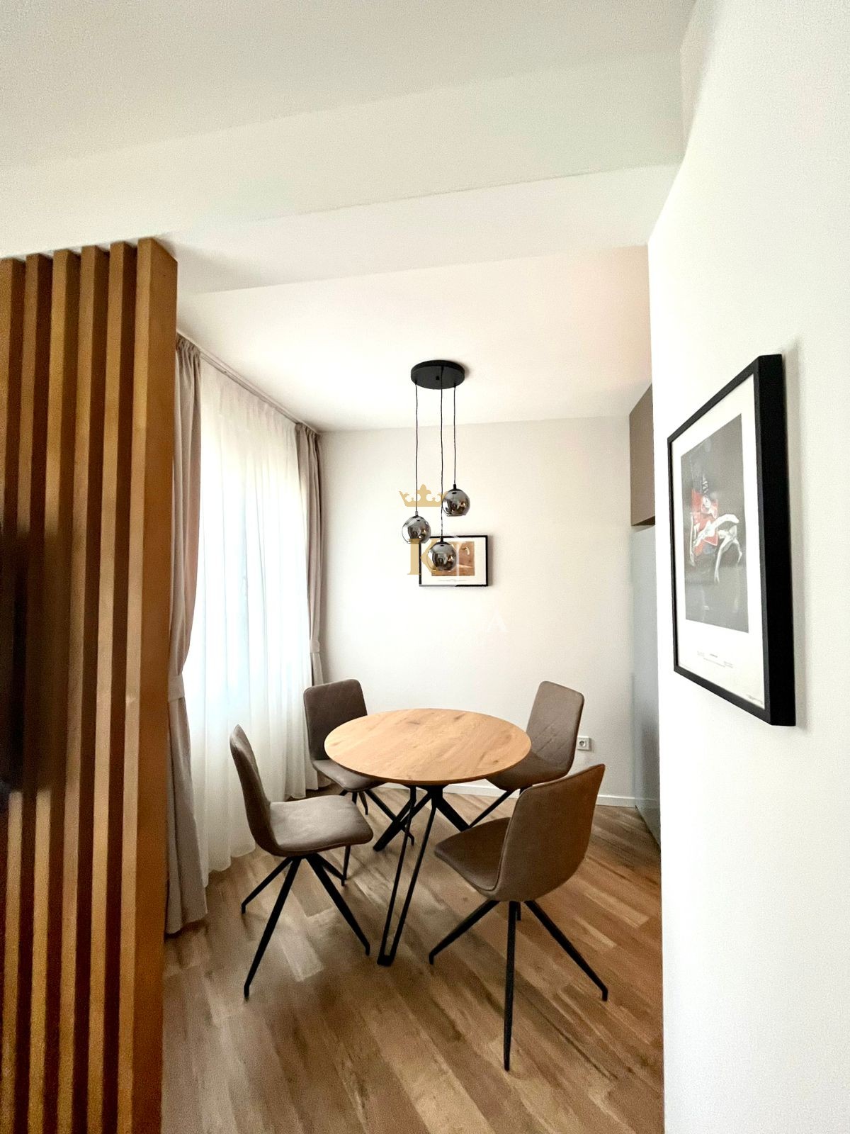Stan se sastoji od otvorenog dnevnog boravka sa trpezarijom i kuhinjom, dve spavaće sobe ( jedna je opremljena kao kancelarija),  kupatila i  terase. U potpunosti je opremljen .