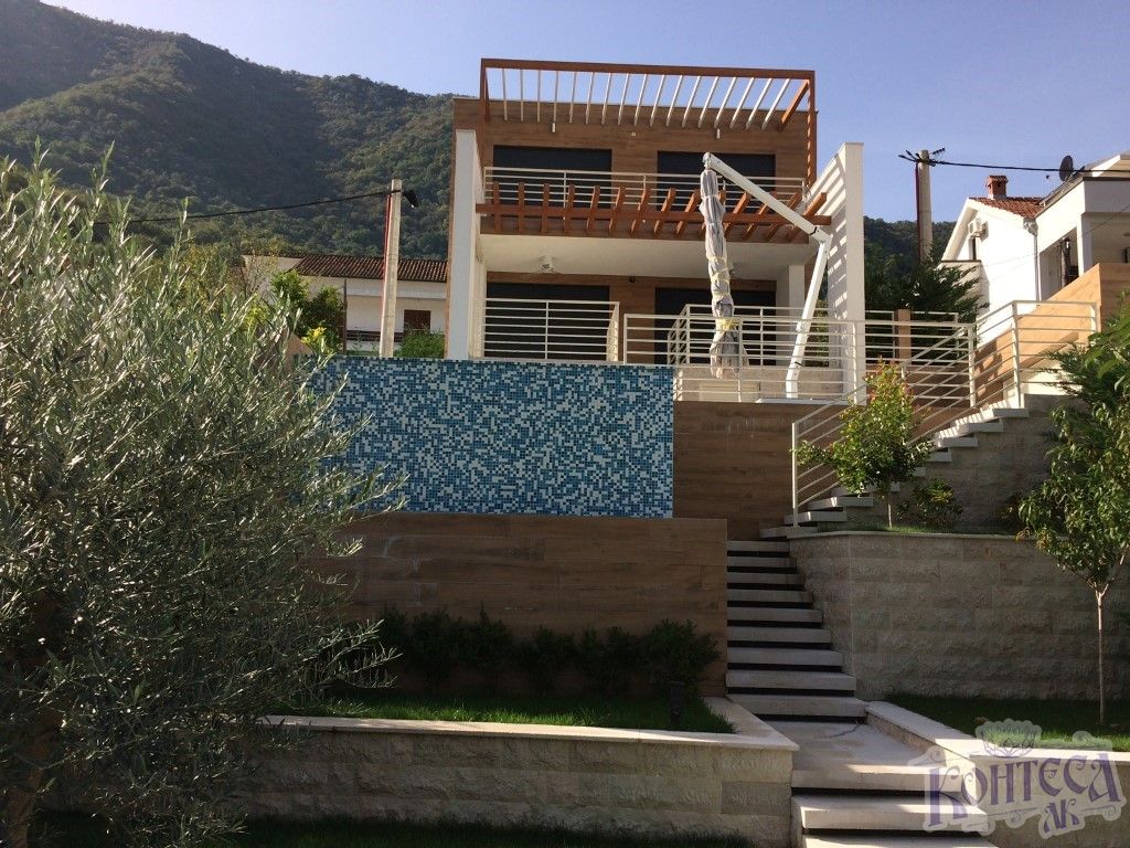 Полностью меблированная вилла современного строительства, на первой линии моря в Столиве, с бассейном. Имеет 3 этажа, 4 спальни, 4 ванные комнаты, большая гостиная с кухней и столовой, гараж, несколько складских помещений и шкафы.