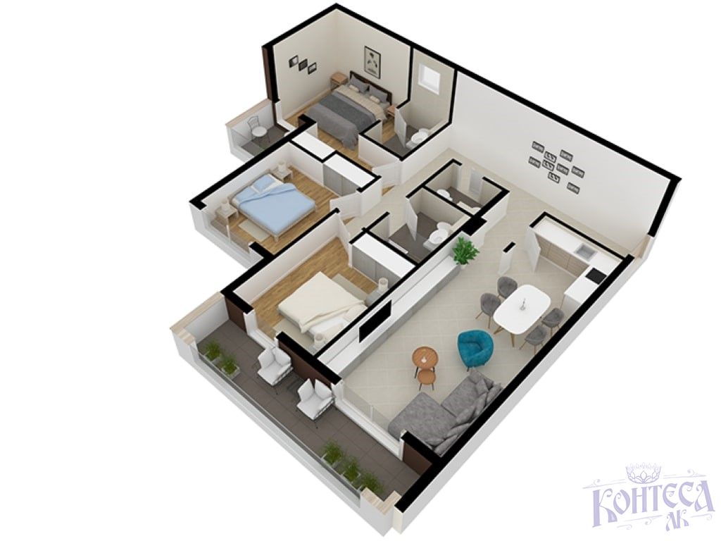 Количество комнат: Три спальни