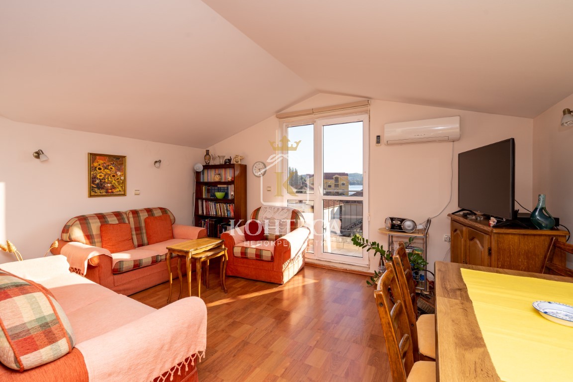 Kвартира состоит из :Oткрытая гостиная с кухней и столовой,спальни 2 , ванные комнаты 1, терраса. Kвартира продается с мебелью. B квартире есть парковочное место. Pасстояние до моря 400 м, до центра 300 м