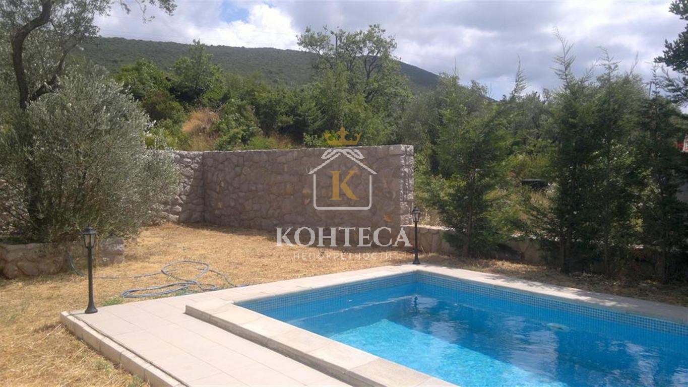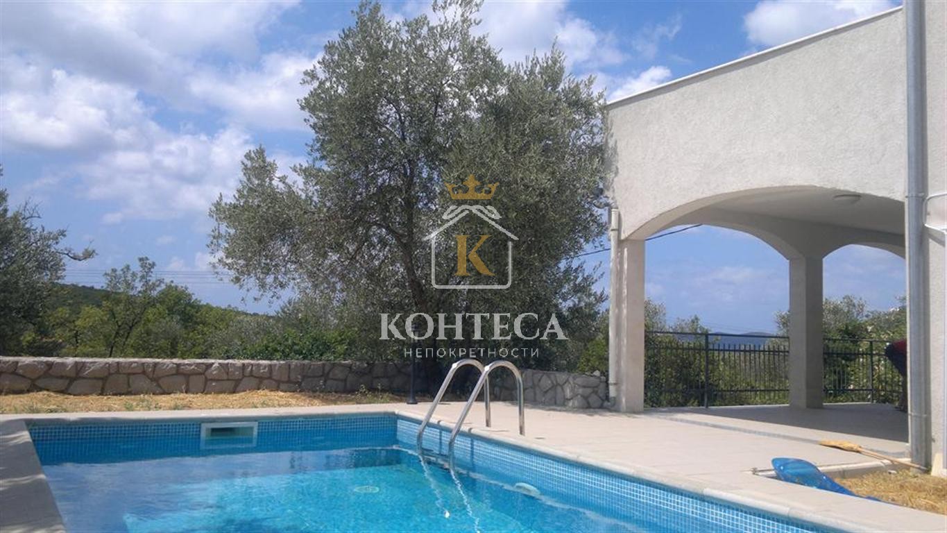 Вилла с бассейном в маленькой деревушке Мркови на полуострове Луштицa! Kрасивый современный дом для отдыха, имеет бассейн и имеет великолепный вид на морской пейзаж и окружающую природу, Первый этаж включает просторную, открытого плана гостиную, столовую и кухню с большой солнечной террасой, а также туалет. На втором — 2 спальни с 2 ваннами. имеется кондиционер. Дом 90м2построен на земельном участке площадью 300 м2. Мебель включена в стоимость недвижимости !!!