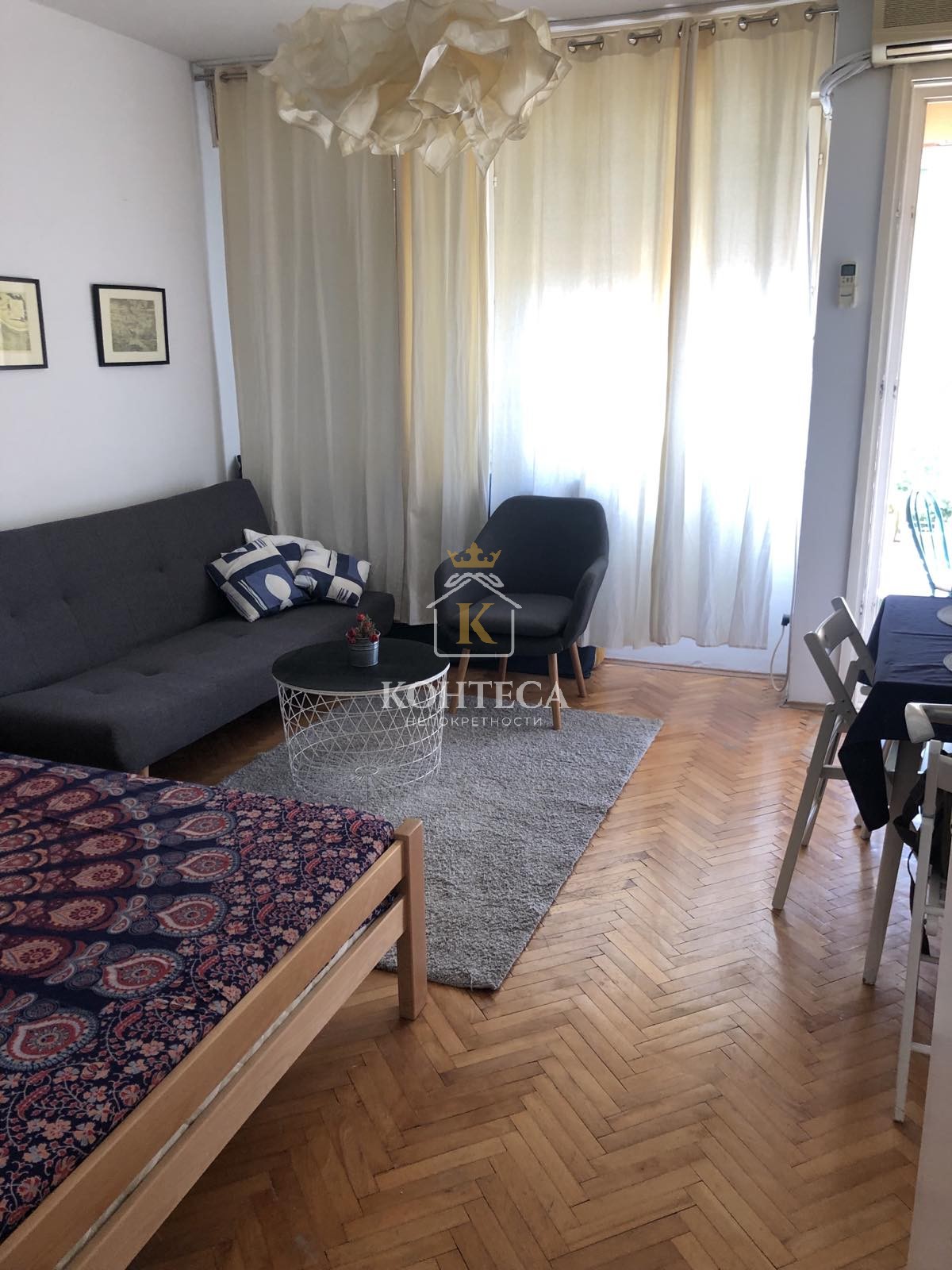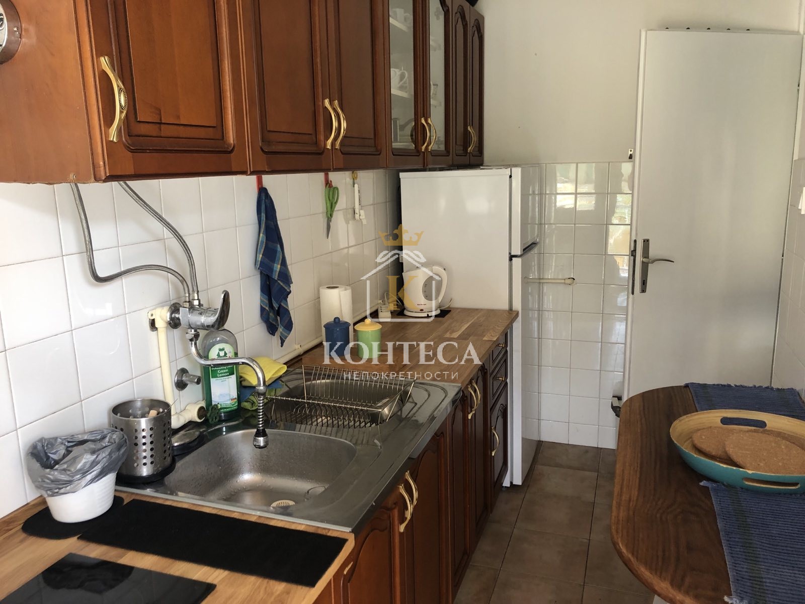 В центре Тивата вопроса квартира состоит из прихожей, ванной комнаты, большая комната, отдельная кухня и терраса.